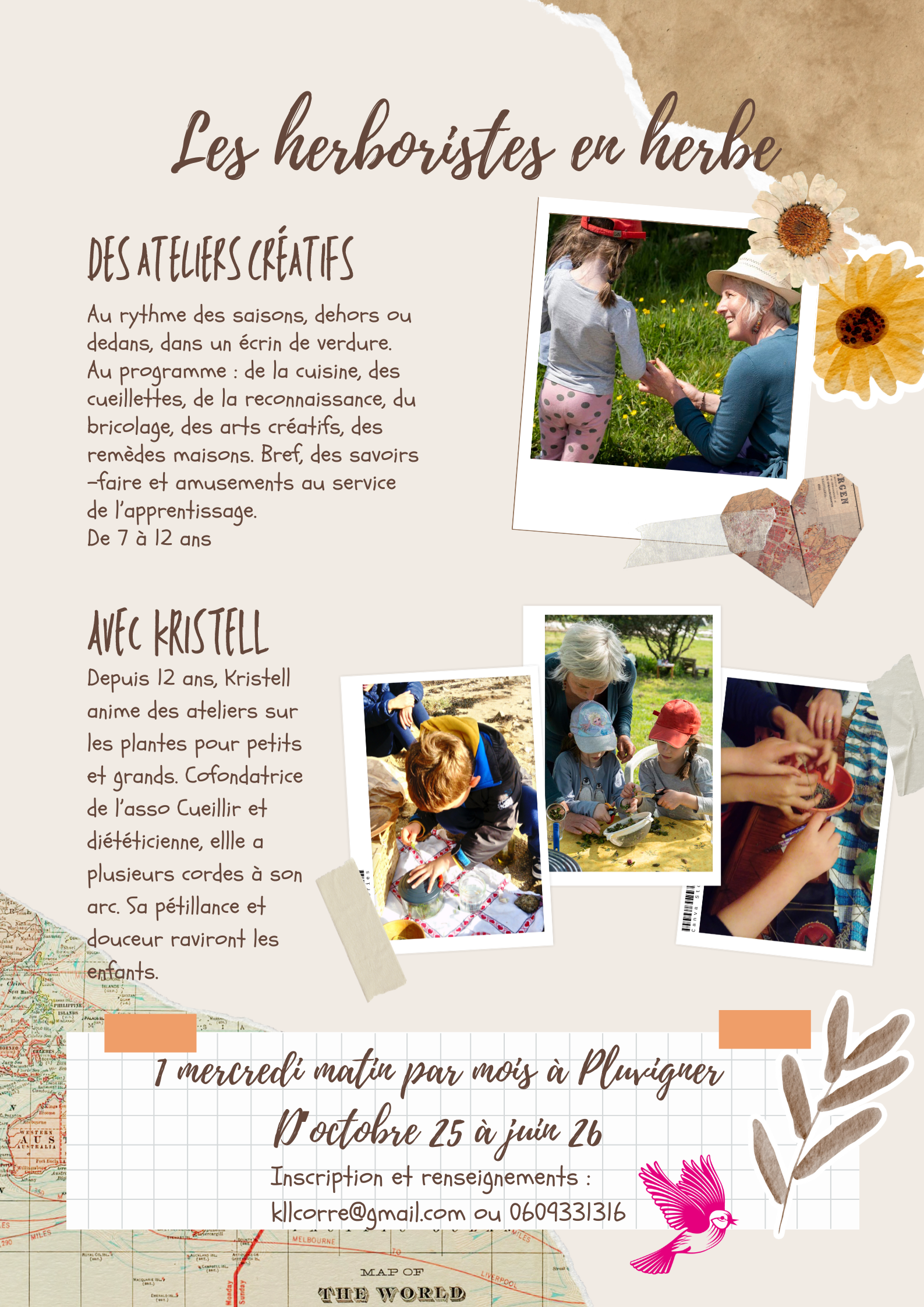 Un cycle d'ateliers à l'année pour les enfants de 7 à 11 ans où l'on va bricoler, faire de la cuisine, apprendre à reconnaître les plantes au rythme des saisons, faire des créations nature.